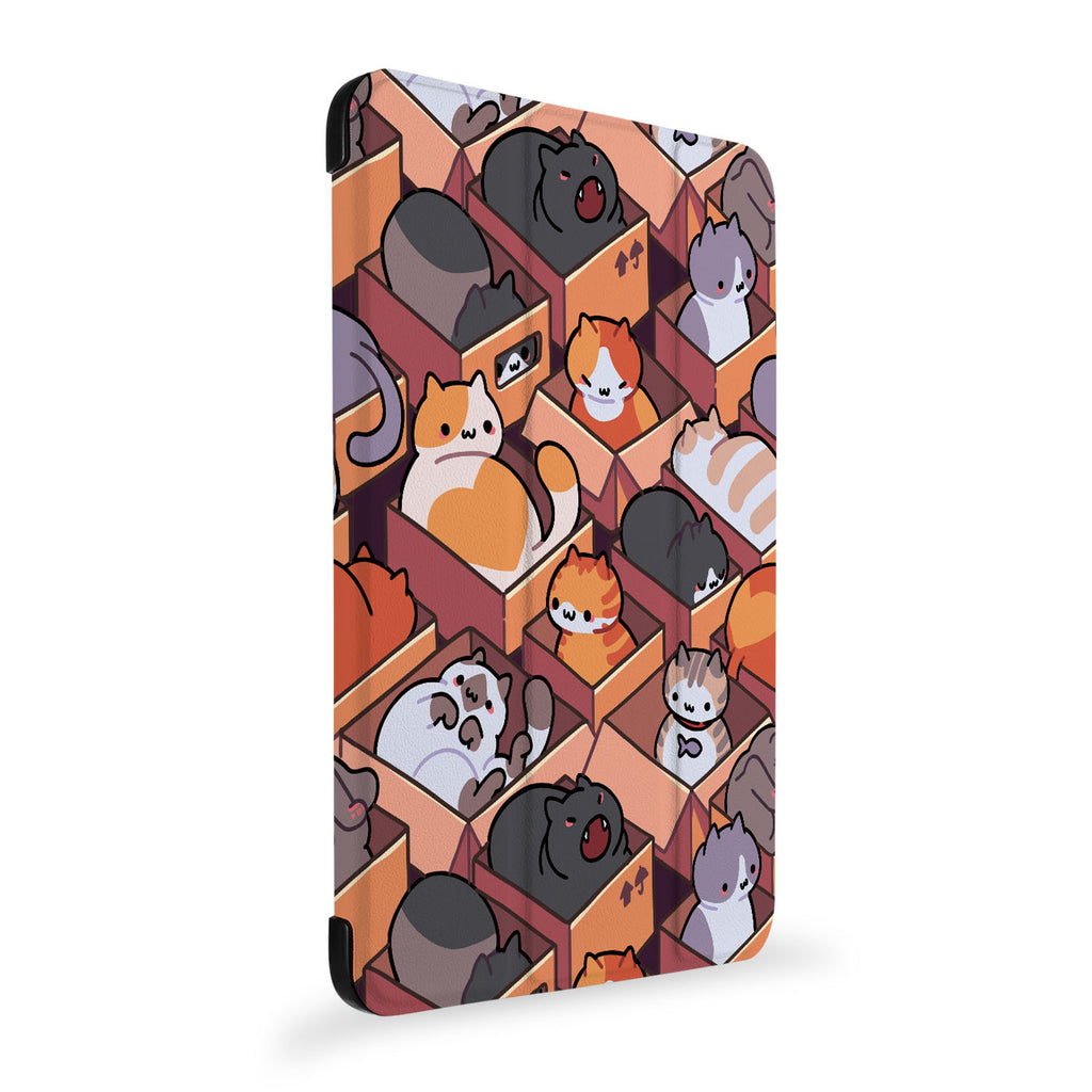 It automatically wakes your iPad when opened and sends it to sleep when closed with Sushi Cats design